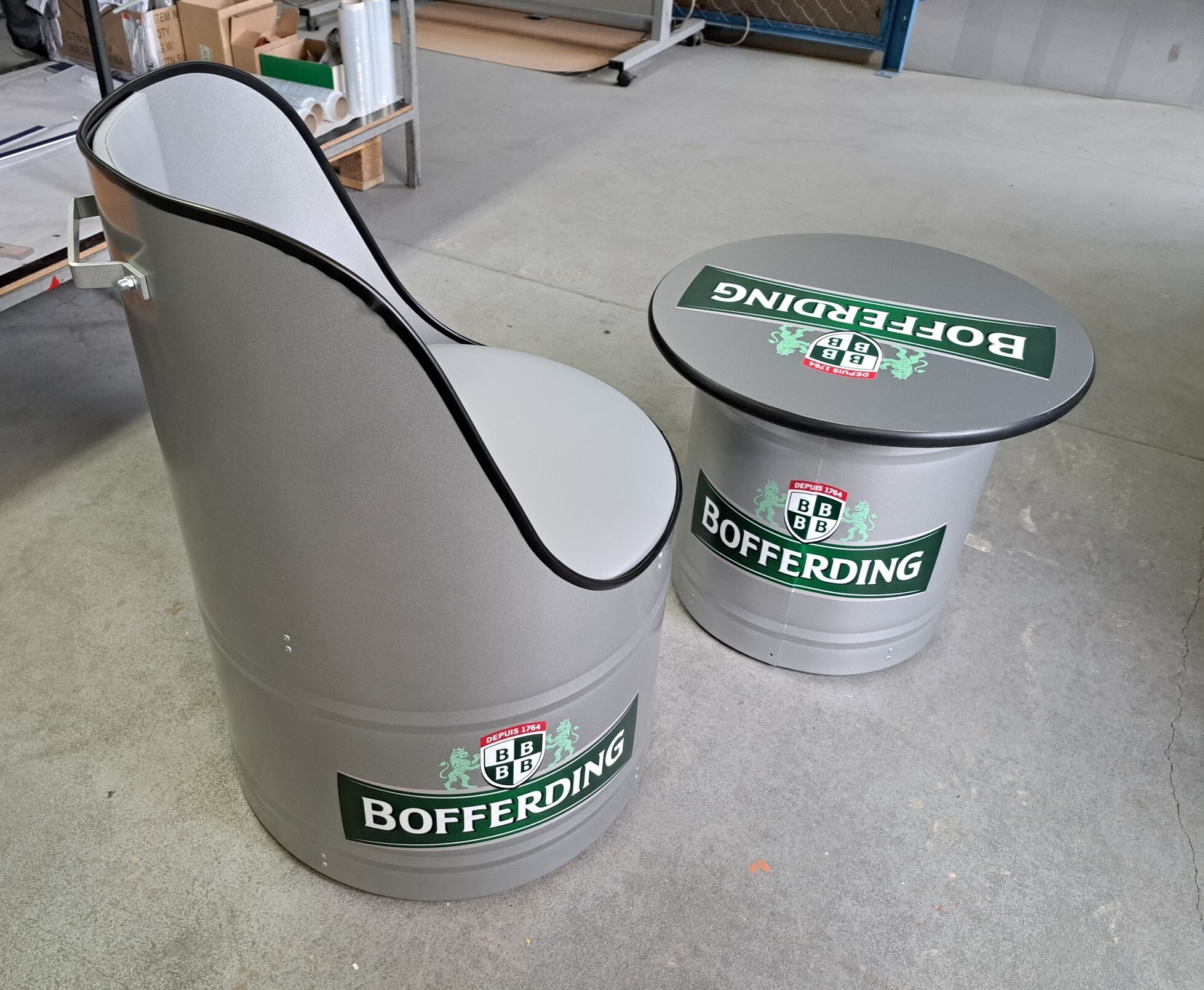 Bofferding - pufy i stolik z beczek