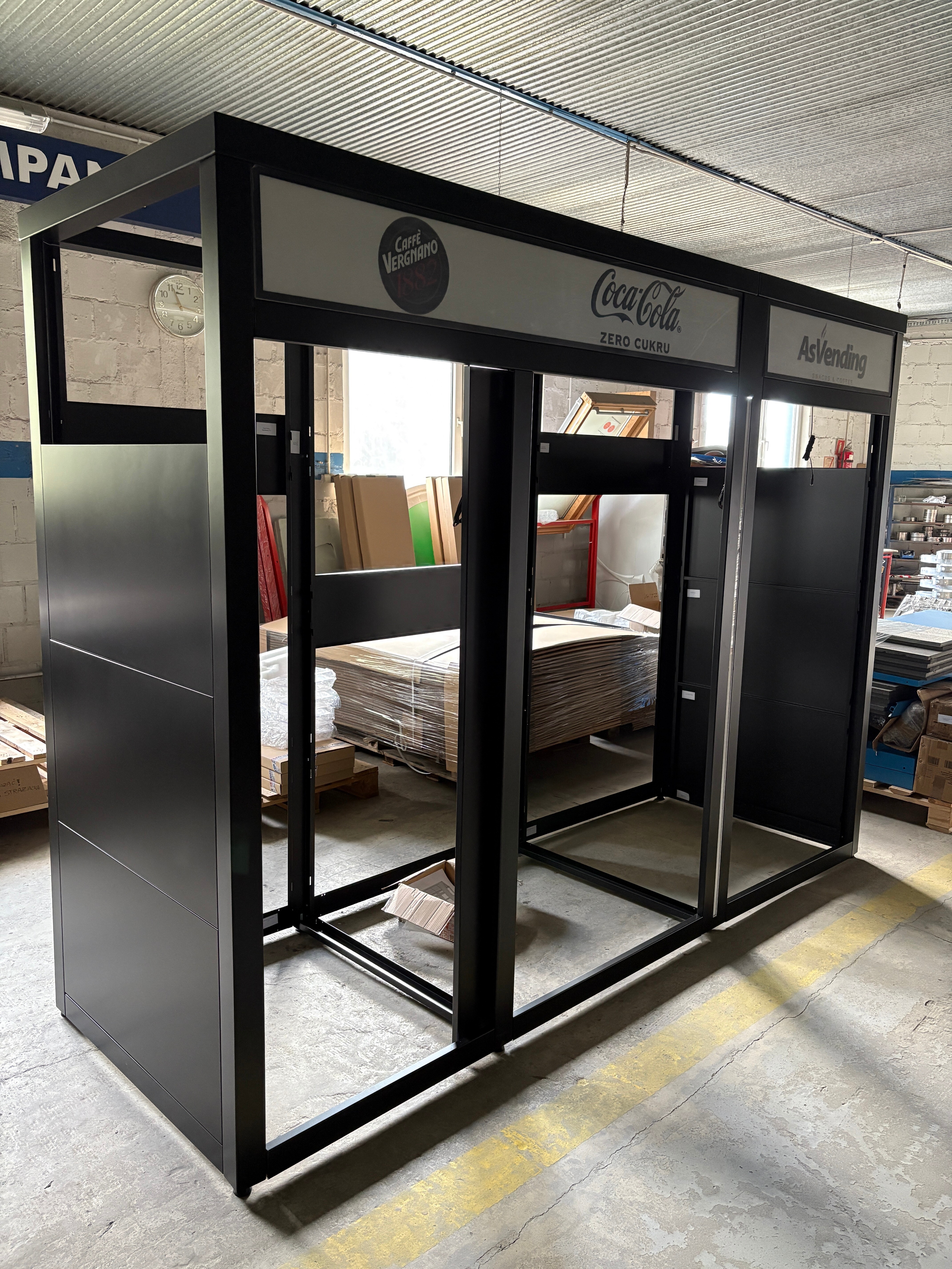 Nowoczesny i atrakcyjny wygląd zabudów vendingowych przyciąga uwagę przechodniów i zachęca ich do skorzystania z oferty zawartej w zainstalowanych maszynach vendingowych. Dodatkowo, oferowany przez nas system obudów vendingowych, zapewnia ochronę automatów przed czynnikami zewnętrznymi i aktami wandalizmu.